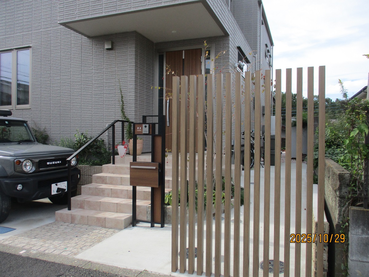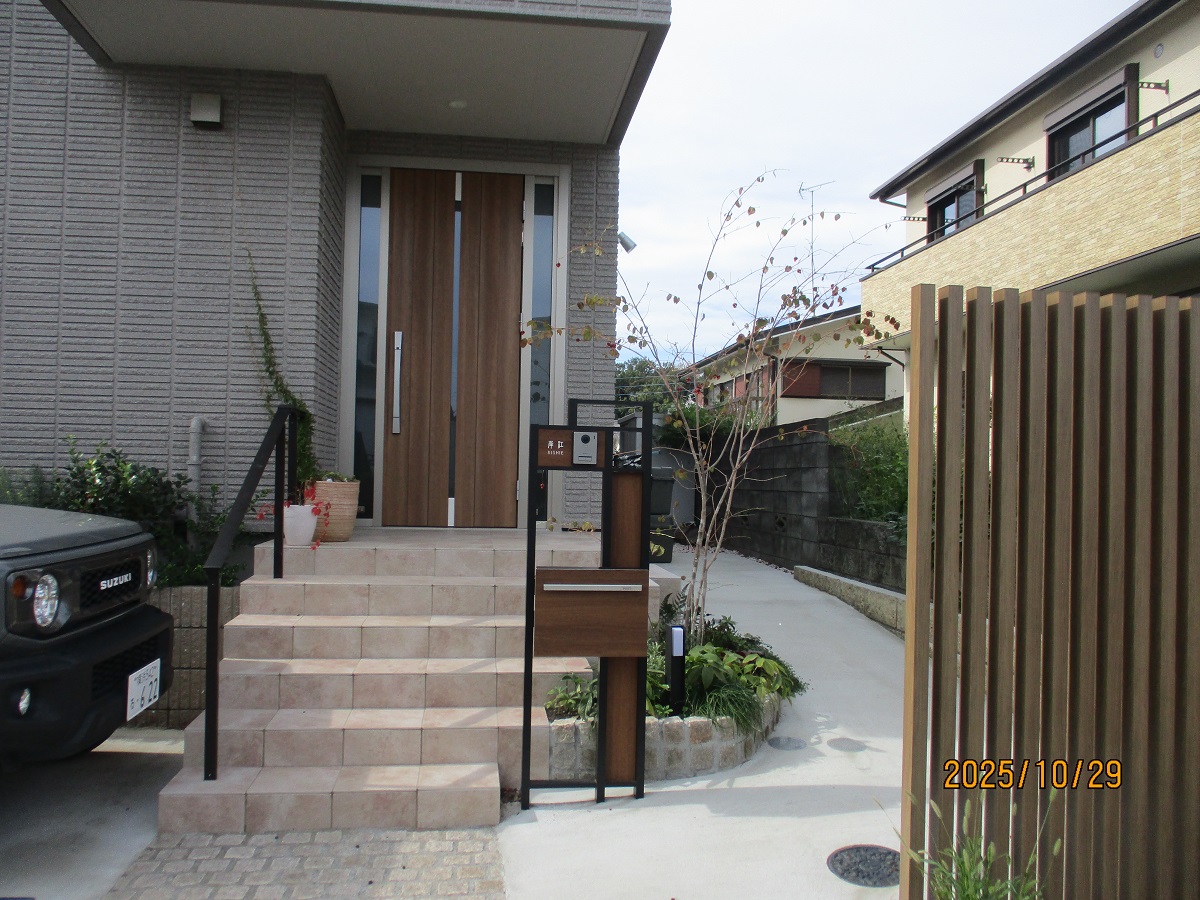 新築に伴い、玄関アプローチから駐車場周りの外構工事を頂きました。
